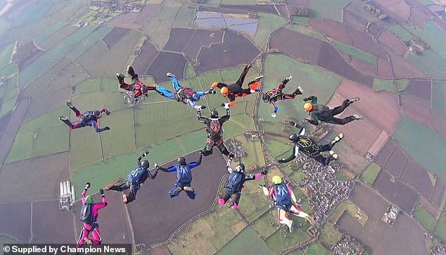 A foto mostra membros da Sociedade de Paraquedismo da Universidade de Southampton durante um salto em 2017