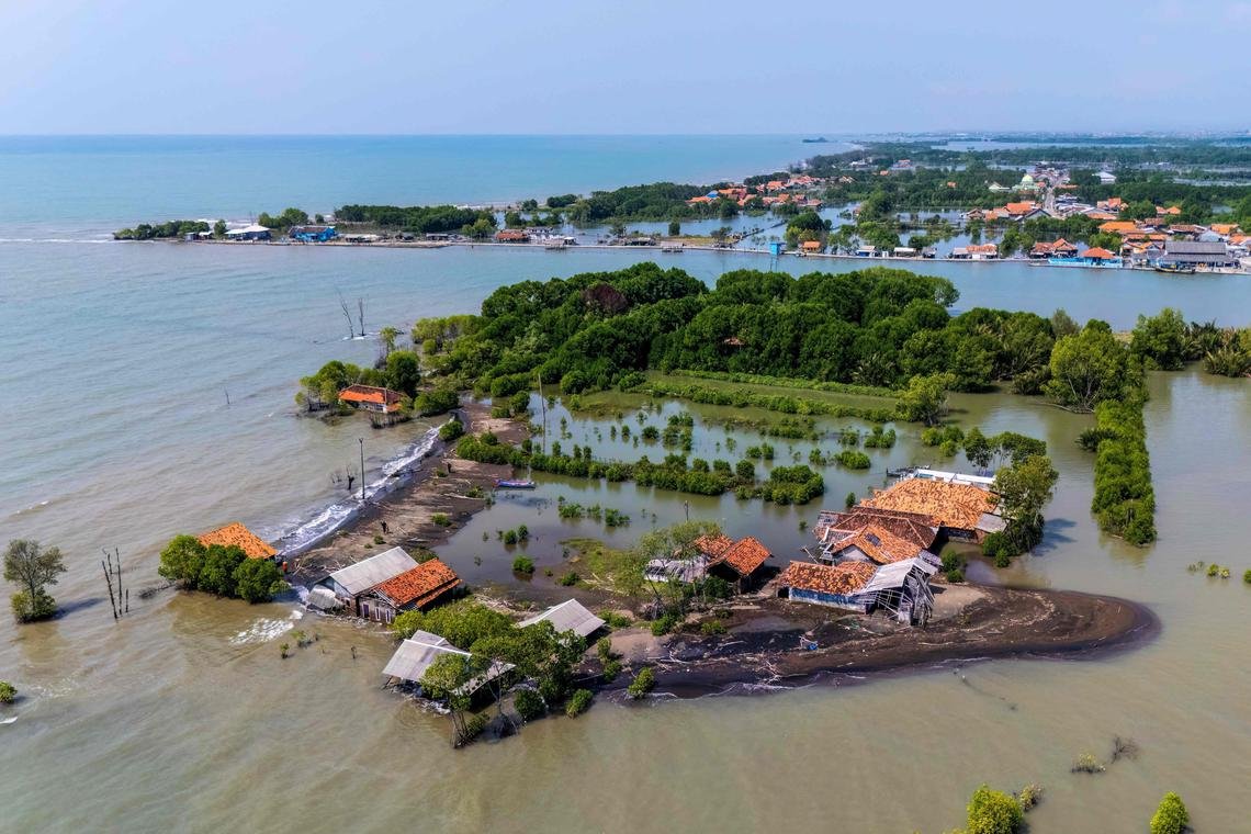 PEKALONGAN, Indonésia – O oceano invasor volta contra uma estrada na vila de Karminah, ameaçando sua casa na ilha de Java da Indonésia, onde o governo diz que tem um plano para impedir a maré.