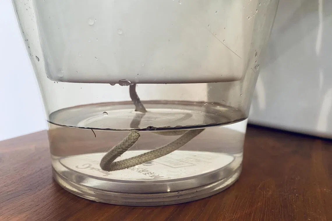 O pavio retira água do reservatório por ação capilar e ajuda a umedecer o meio de cultivo.