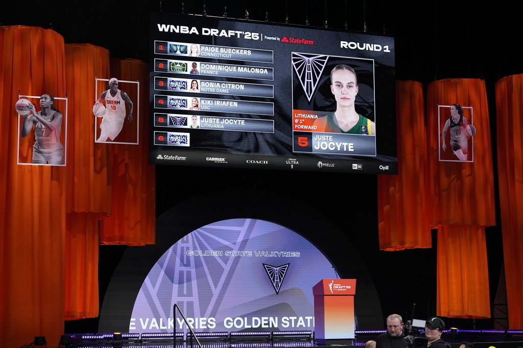 A primeira escolha de franquia, com o Golden State Valkiriz O armador lituano selecionado Just -Jokite ė em quinto lugar geral.