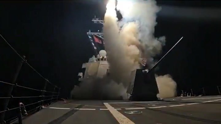 Imagens compartilhadas pelo Departamento de Defesa na sexta-feira (26 de dezembro) mostram um míssil sendo disparado de um navio militar.