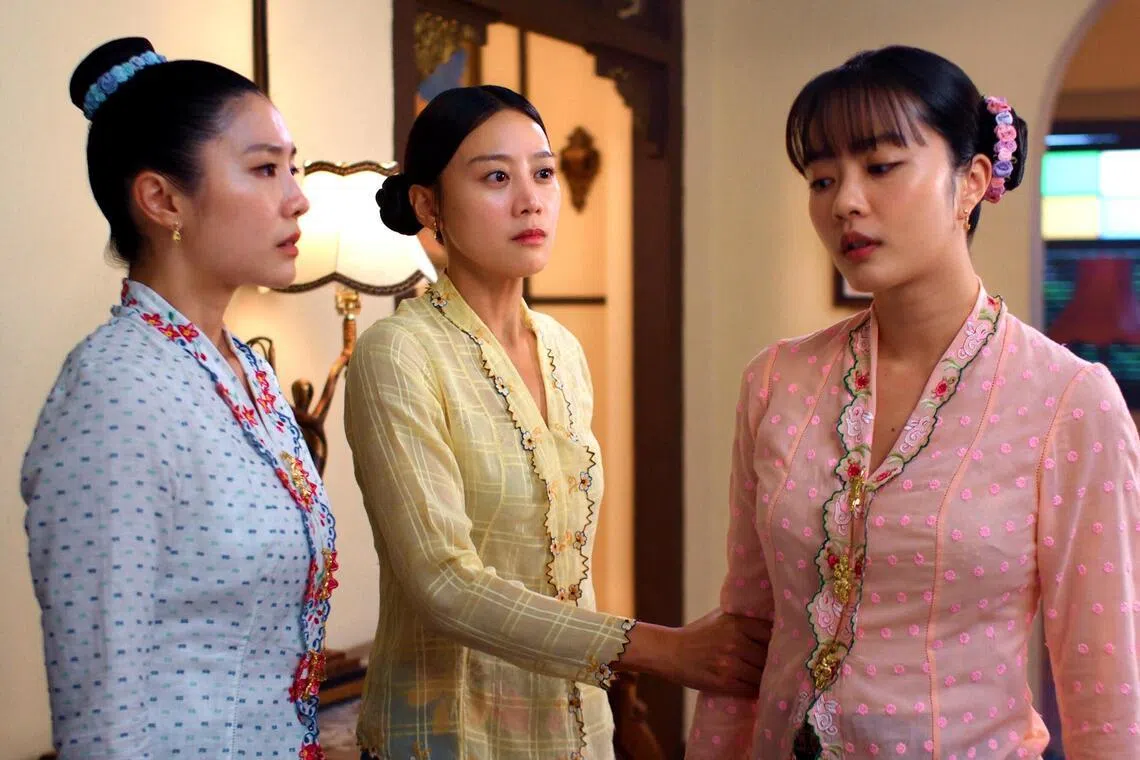 Emerald Hill – A Little Nyonya Story, estrelado (da esquerda) Farin Wong, Tasha Low e Chantal Ng.